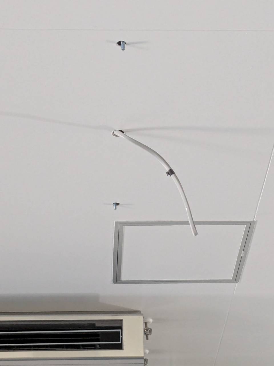 作業 2026/04/25 ちゃんと確認お願いします 新築工事の仕上げも進み照明器具を取り付け始めています。 ところが照明器具を付けようとしたら・・・「付けたら点検口が開かなくなるぞ!」って所が出てきました。 担当者さん、ちゃんと確認して欲しいです。 仕事日記